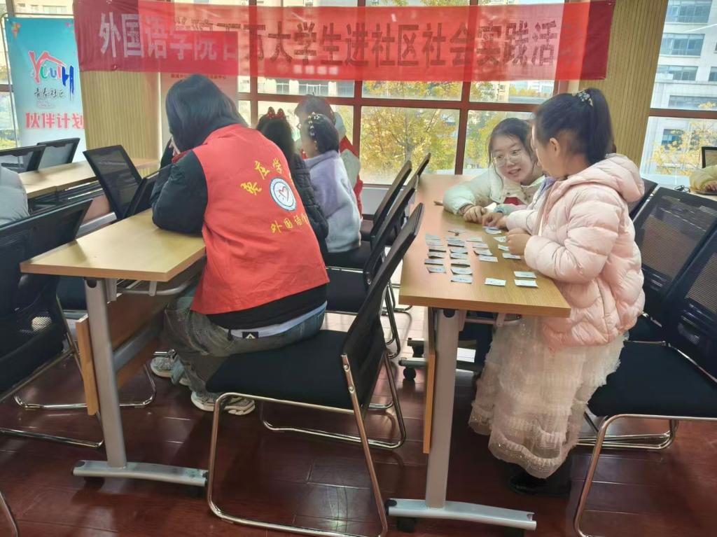 11月23日,yl23455永利“语荟青春”志愿队赴枣庄市薛城区凯润社区开展“百万大学生进社区”社会实践活动,为社区儿童带来了一场别开生面的“趣味英语”启蒙课堂。